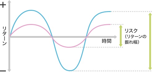 逆にローリスクの投資商品は振れ幅が小さいため、利益や損失も小さくなる。このグラフを見ると分かるように、基本的にハイリスクの商品ほどハイリターンとなるし、ローリスクの商品ほどローリターンになるんだ。
