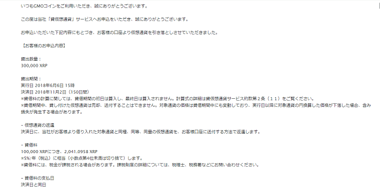私は実際に2018年6月6日からGMOコインでXRPの貸し出しを行いました。GMOコインはGMOインターネットグループが運営しており、セキュリティーも高いため貸し出すには最適です。