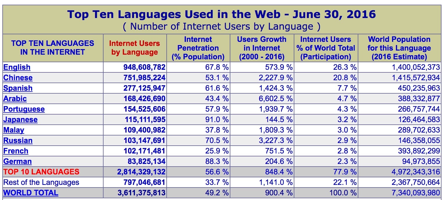 インターネット上での、日本語人口は世界でたった3%しかありません。