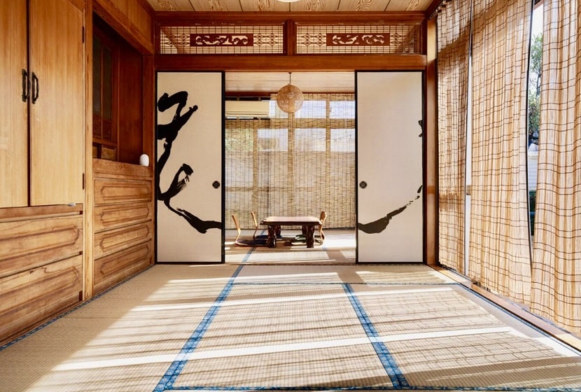 畳は張り替えて朝日が入りやすいように竹のカーテンを使った。朝日が竹のカーテンから室内に差し込む様子はすごく綺麗です。