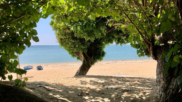 今日の沖縄は最高の天気だ!思わずビーチの木陰でニートしてみたShunです。全然人がいないからすげー寂しいよ・・・。